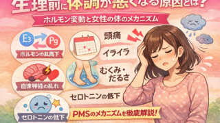 未分類 生理前に体調が悪くなる原因とは?ホルモン変動からみるPMSのメカニズムを詳しく解説